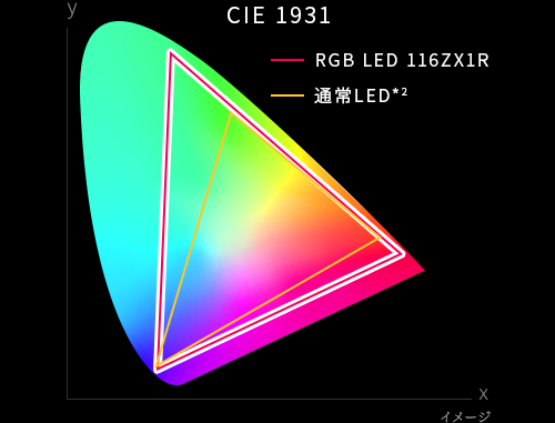 RGBの各LEDを独立して高色純度で発光することで、従来比110%*1の広色域化を実現。これまでにない自然で色あざやかな高画質を実現。