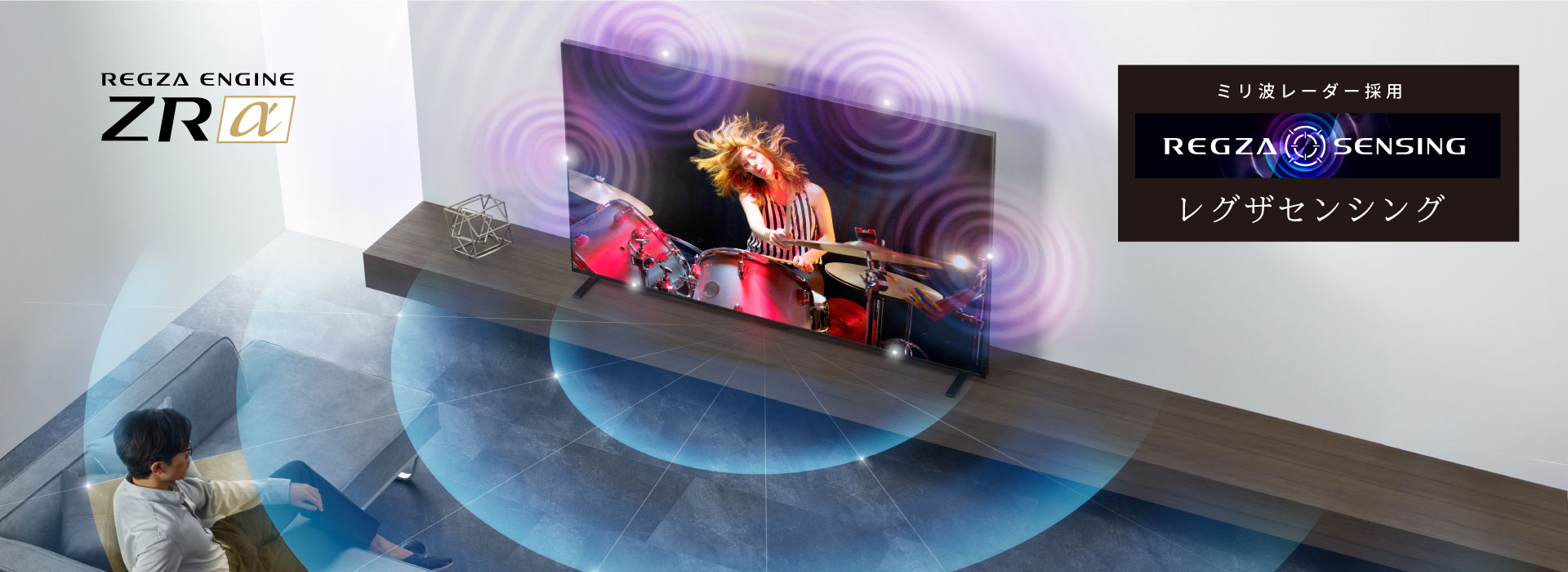ミリ波レーダーシステムにより、視聴者の位置を認識、高画質映像処理エンジン「レグザエンジンZRα」が視聴距離に基づいた適切な画質に自動調整します。