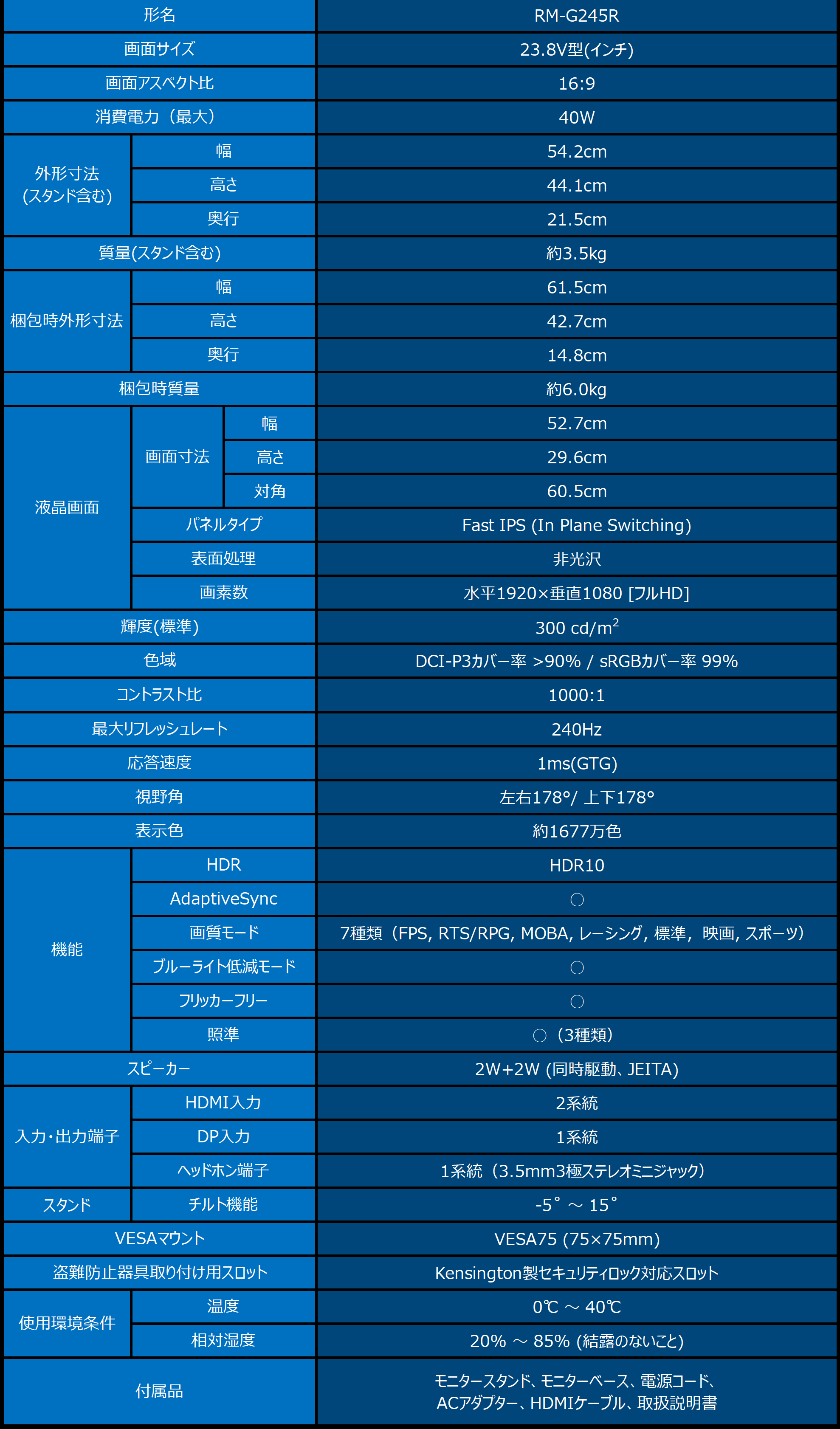 また、応答速度が速く、動きの激しいゲームでも快適にプレイを楽しめます。