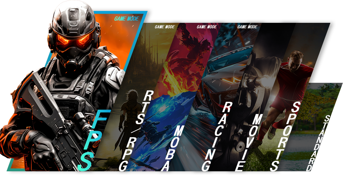 ゲームジャンルごとに用意された4つのモードと、更に[映画][スポーツ][標準]の+3モードから選択するだけでかんたん調整!