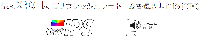最大240Hzの高リフレッシュレートと、応答速度1ms(GTG) を実現。