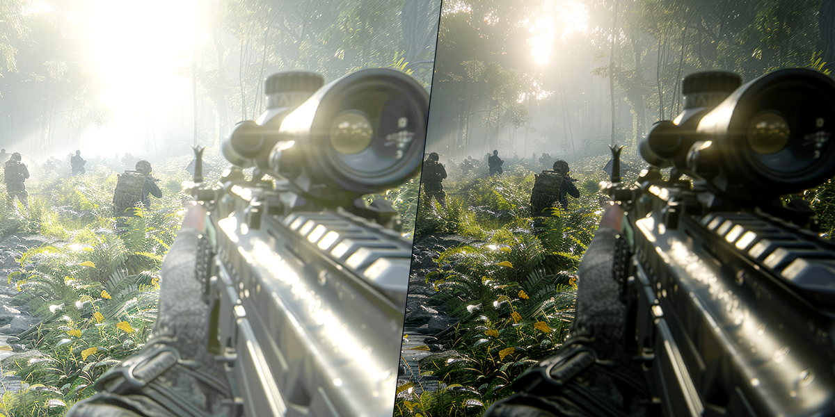 ブラックゲインレベルの調整によりFPSゲームで重視される暗がりの視認性を向上し、背景に紛れ込む敵も容易に見つけだせます。