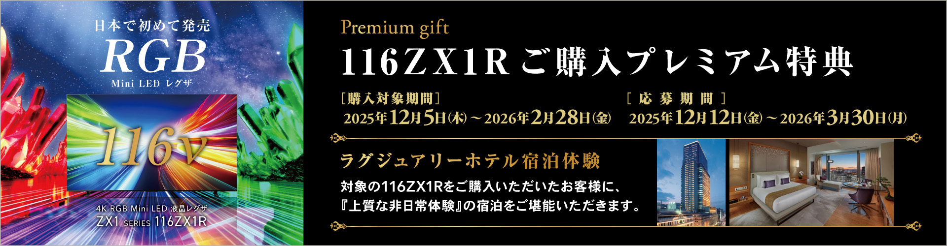 *1) 国内で民生用に販売される、赤、緑、青の3色のMini LEDバックライトでそれぞれの色を独立して駆動するエリアコントロール機能を有する液晶テレビとして(2025年12月5日発売予定)